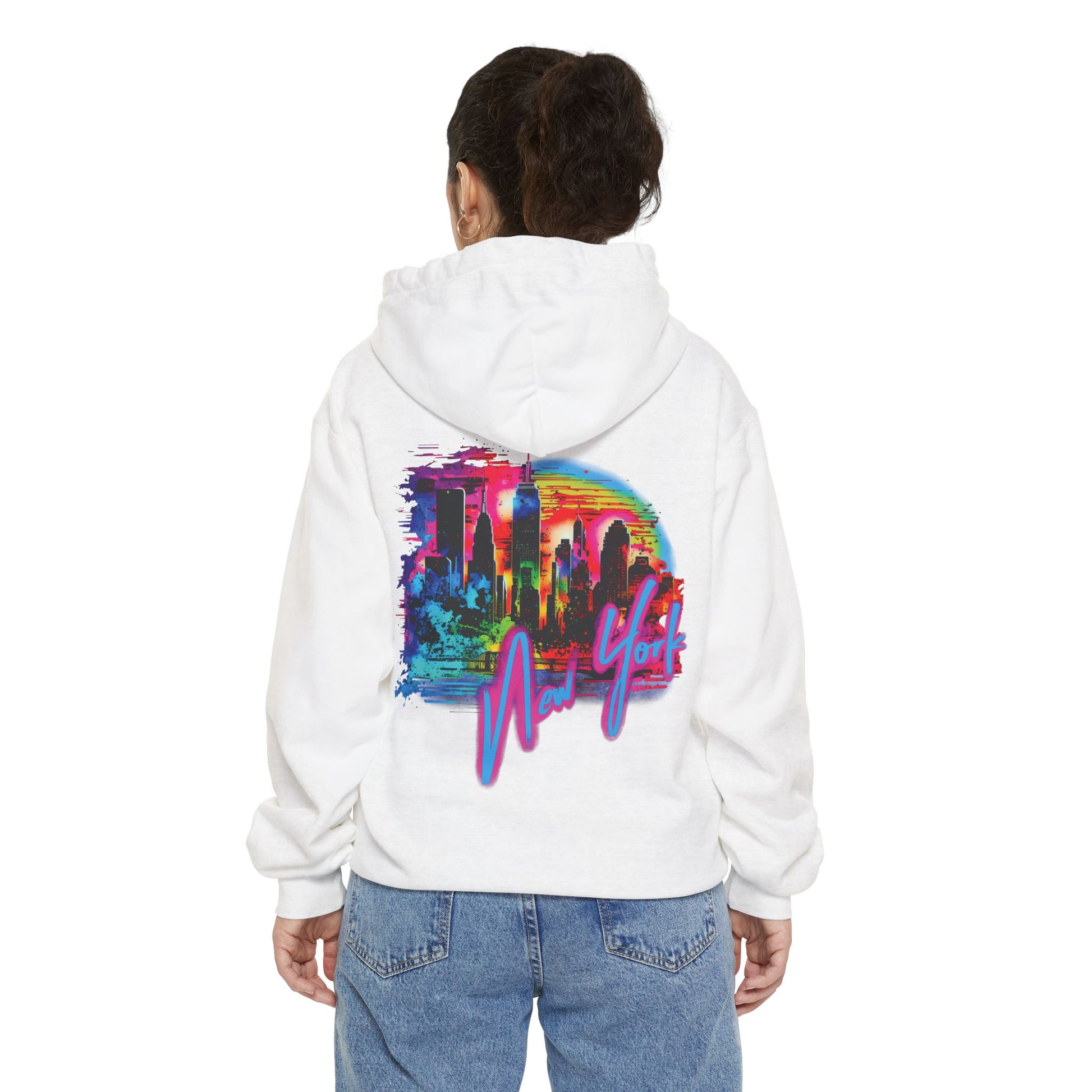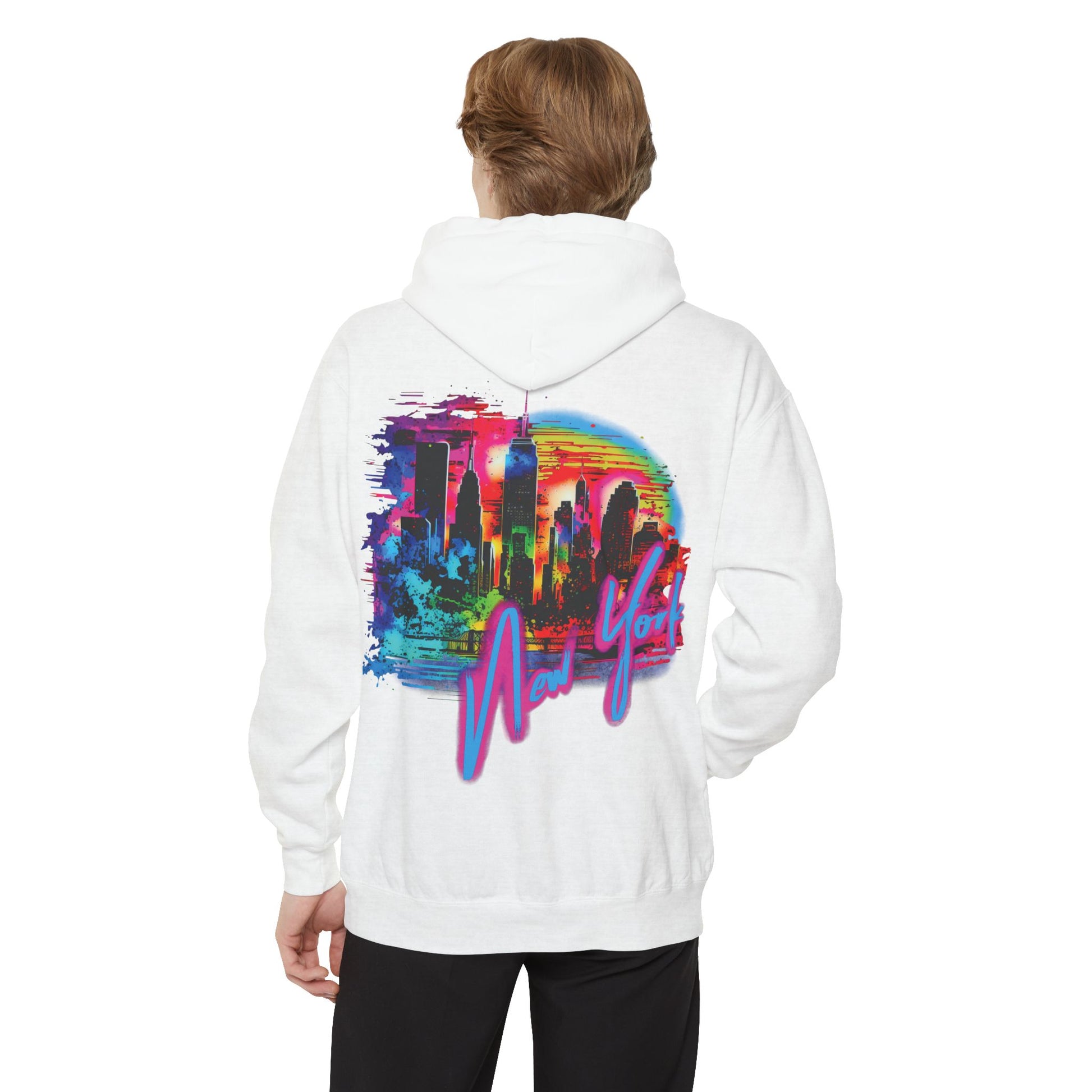 Embrace the lively and colorful spirit of New York with this stylish and energetic hoodie design.