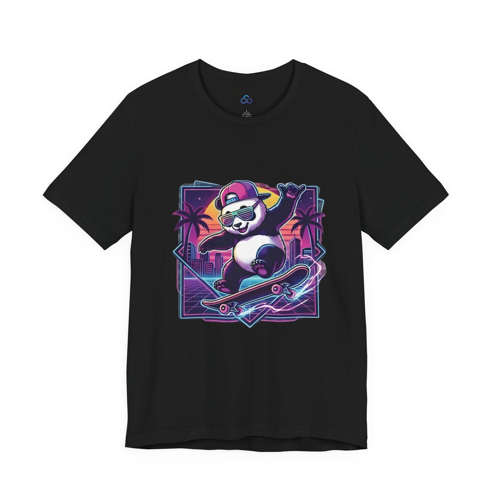 Turn heads and ride in style with this one-of-a-kind neon skate panda tee!