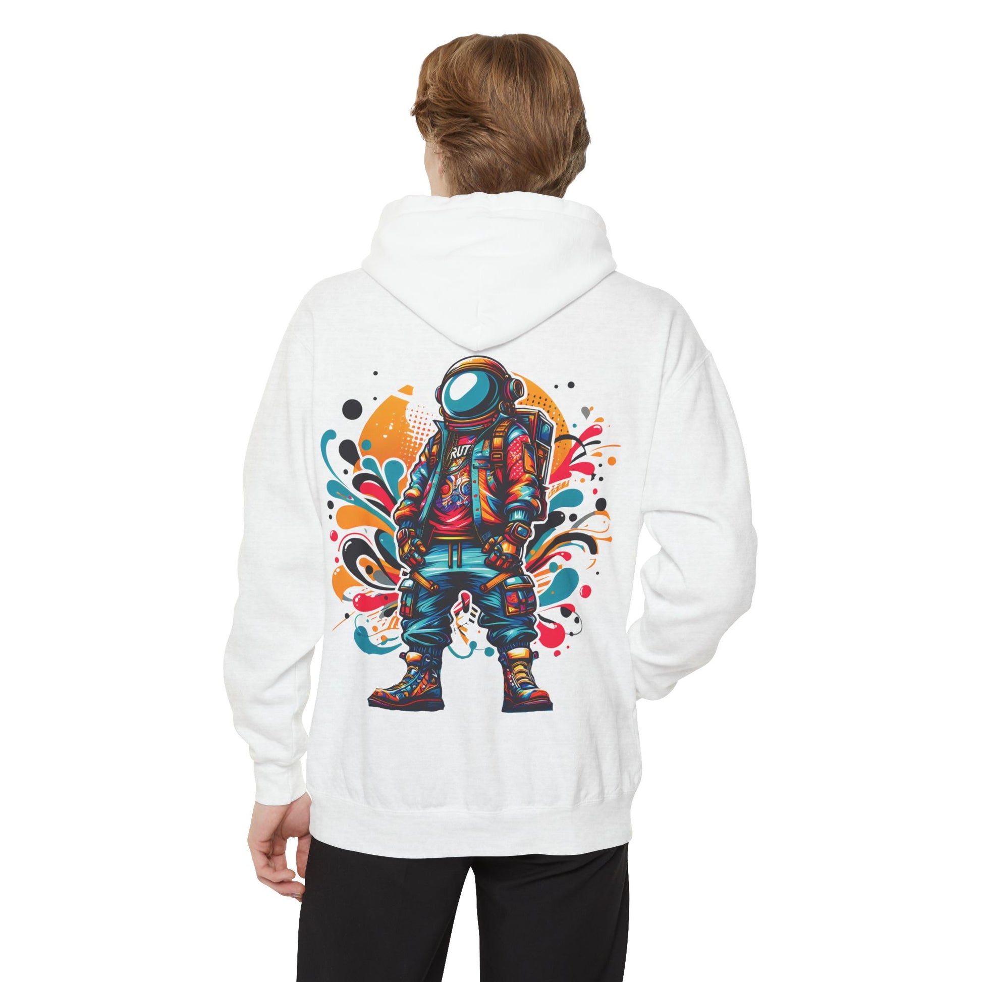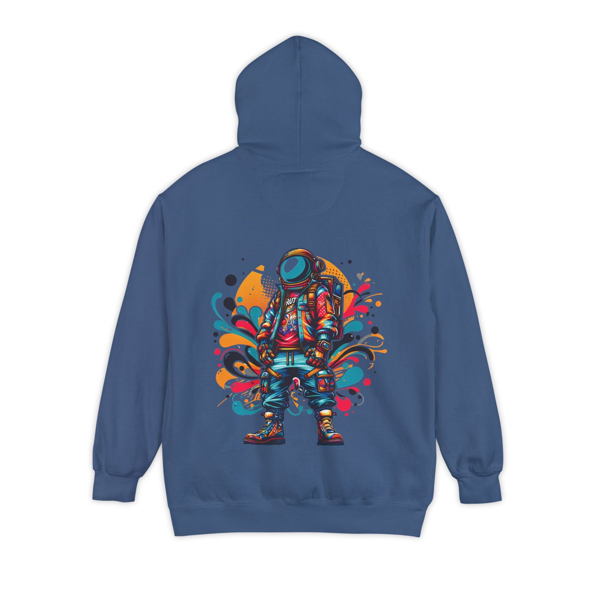 Embark on a cosmic journey and make a bold statement with this colorful and dynamic hoodie design.