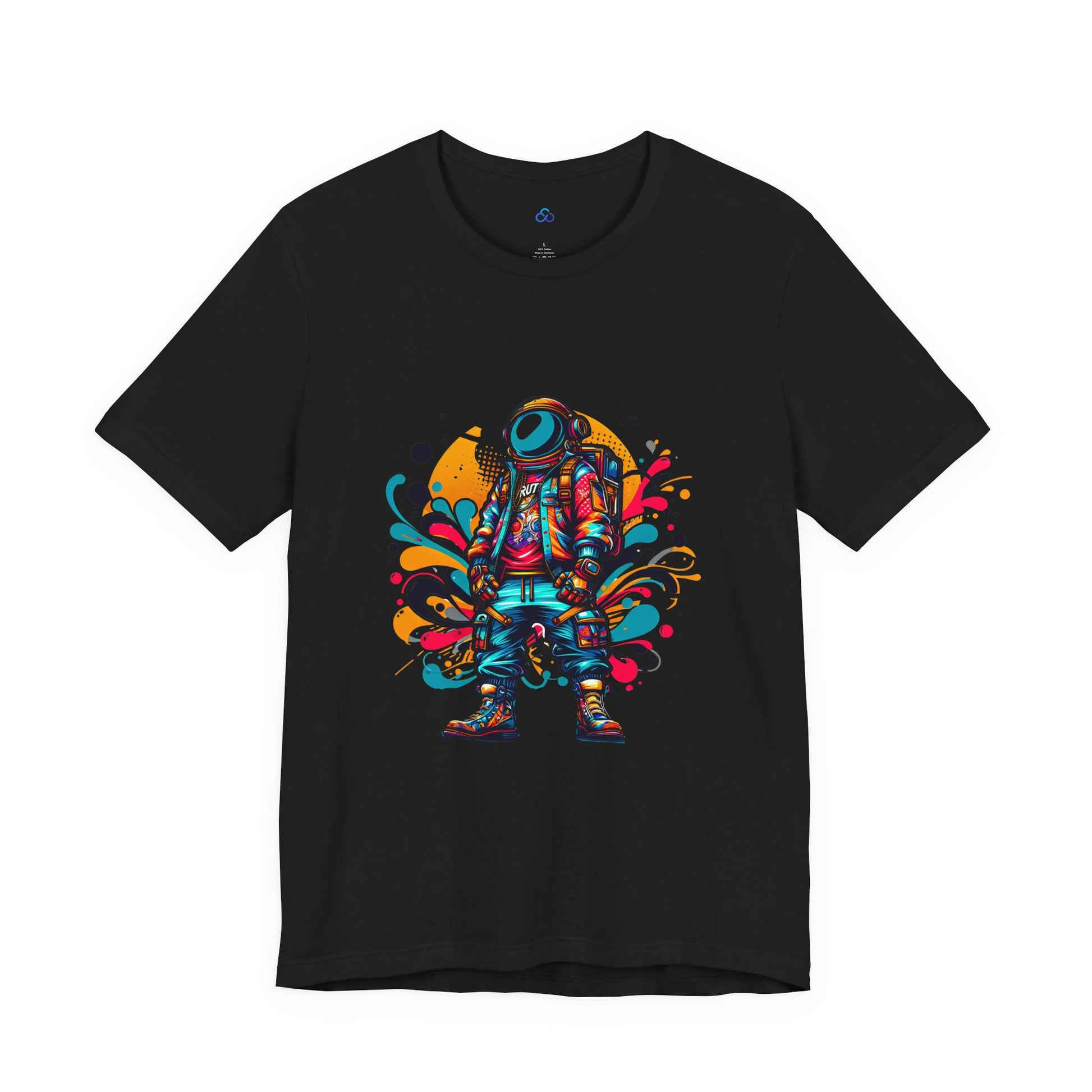Embark on a cosmic journey and make a bold statement with this colorful and dynamic t-shirt design.