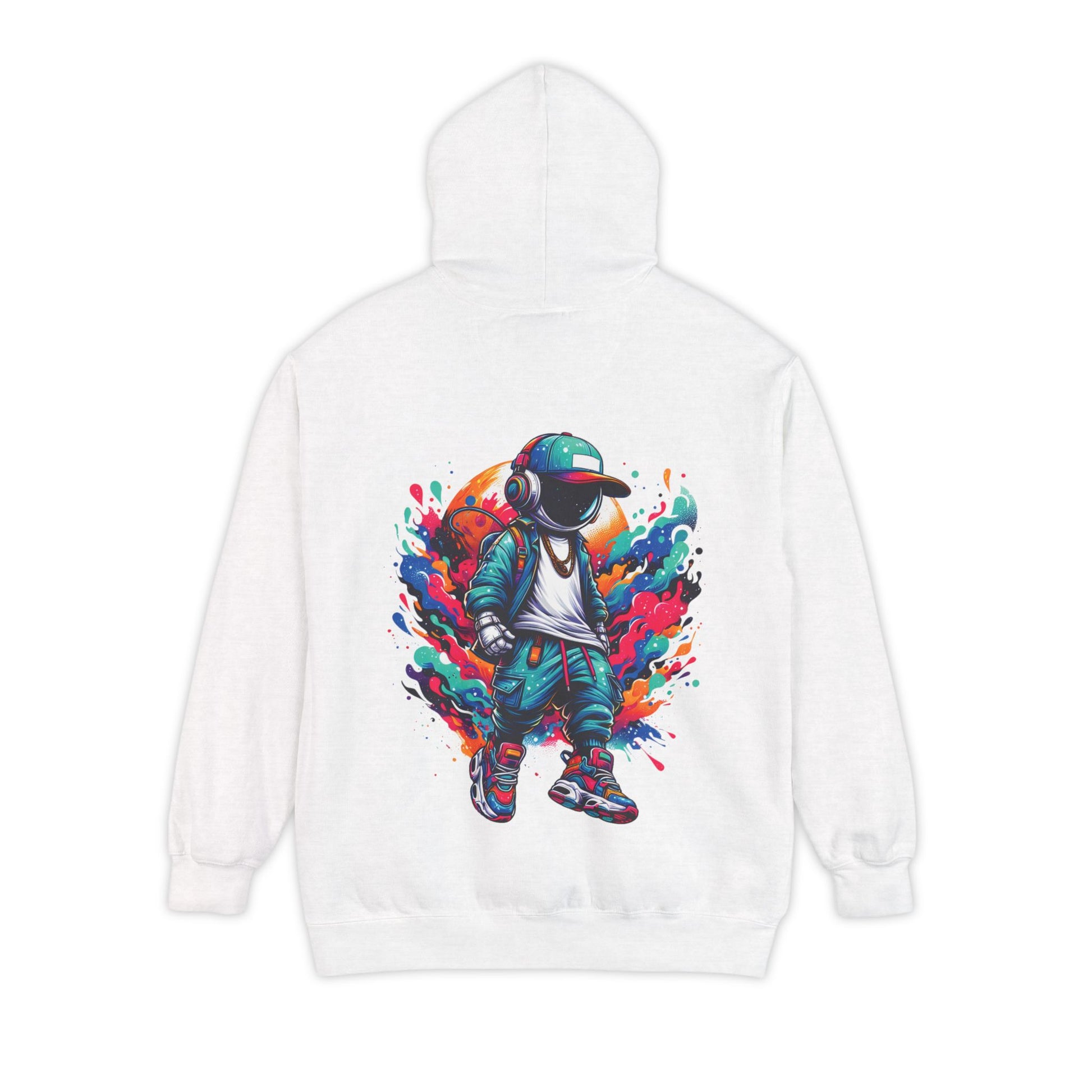 Elevate your style to astronomical levels with our "Streetwear Astronaut" hoodie. This eye-catching design features a hip astronaut, decked out in streetwear, complete with a cap, headphones, and a gold chain, confidently strolling through a vibrant, cosmic backdrop. The explosion of neon colors—pink, blue, orange, and green—creates a dynamic and energetic visual that perfectly blends urban fashion with outer space adventure. The intricate details and bold hues make this hoodie a standout piece for any wardrobe. Printed on high-quality, comfortable fabric, it’s ideal for those who love unique, artistic designs and want to make a bold fashion statement. Perfect for casual wear, this hoodie combines the best of street style and cosmic cool.