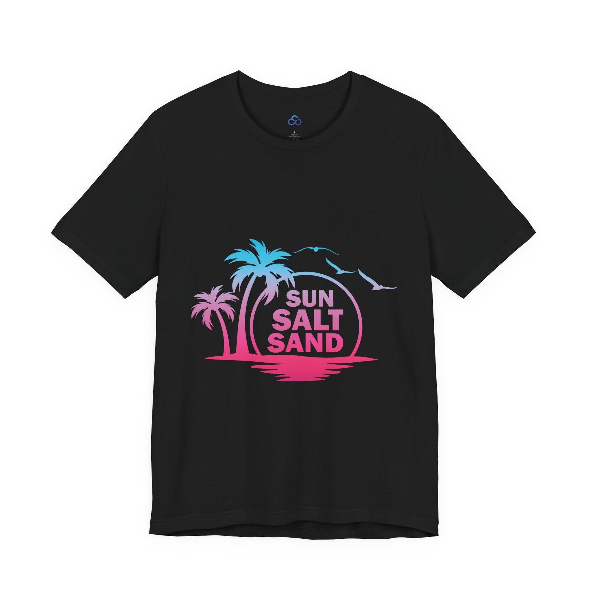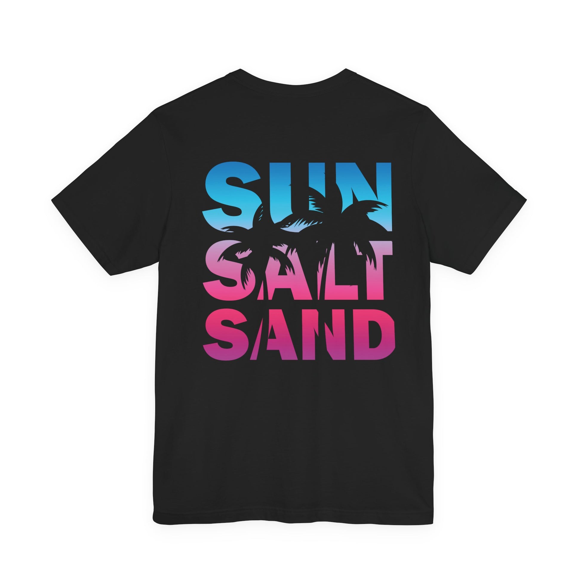 🌴 Bring the heat of summer wherever you go with the Sun Salt Sand T-Shirt, designed for beach lovers, sun chasers, and anyone who lives for that endless-summer vibe. Featuring a bold blue-to-pink gradient, tropical palm trees, and clean “SUN SALT SAND” lettering, this design captures everything you love about warm days, ocean waves, and sandy toes.